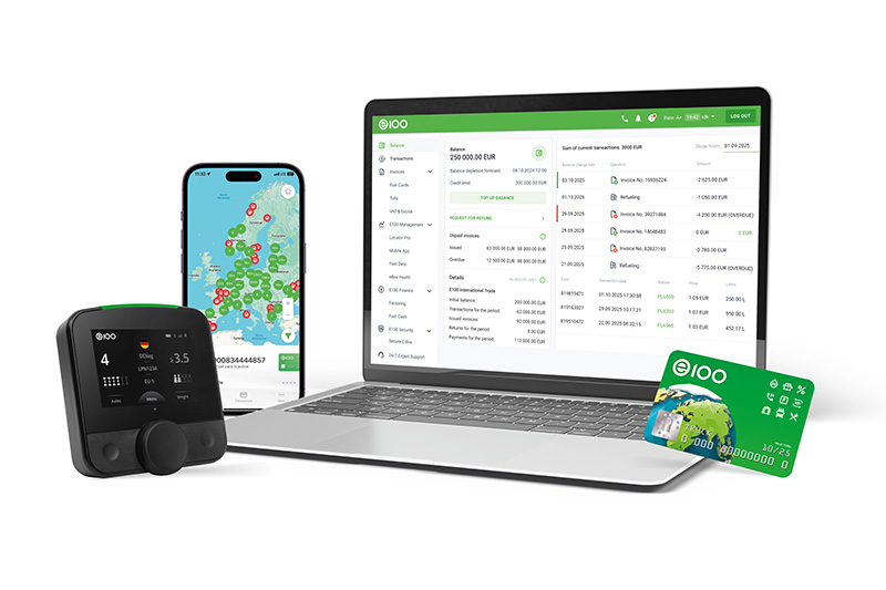 – W rozmowach z klientami podkreślam trzy rzeczy niezwykle ważne z punktu widzenia właściciela firmy transportowej – mówi Piotr Spodar. – Sieć akceptacji naszej karty – 20.000 punktów w Europie, co plasuje nas w top 3 na kontynencie. Serwis i wsparcie eksperckie – nasz hotline działa 24 godziny przez 7 dni tygodnia. I jest to naprawdę unikatowe wsparcie naszych klientów w ich codziennej pracy tam, gdzie tego potrzebują najbardziej czyli w pracy, w trasie. Ponadto nowoczesne i innowacyjne narzędzia cyfrowe, które składają się na komplementarny ekosystem E100, który wspiera współczesnych przewoźników. Proszę zwrócić uwagę, że część z wymienionych przeze mnie technologii działa w czasie rzeczywistym, zapewniając bezpieczeństwo i dostęp do danych w trybie LIVE.